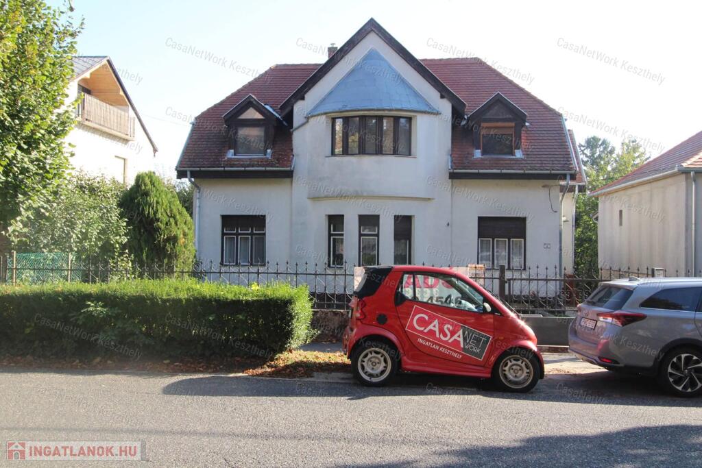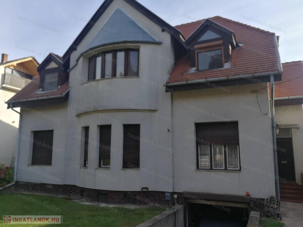 Kiváló elhelyezkedéssel, Keszthely belvárosában eladó egy nagypolgári jellegű, kétszintes, kétlakásos családi ház, 772 m² telken, garázzsal, hátsó gondozott kerttel.