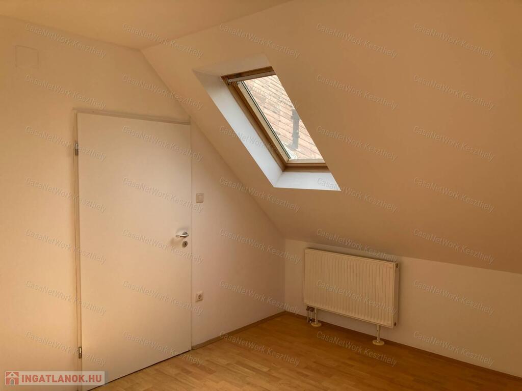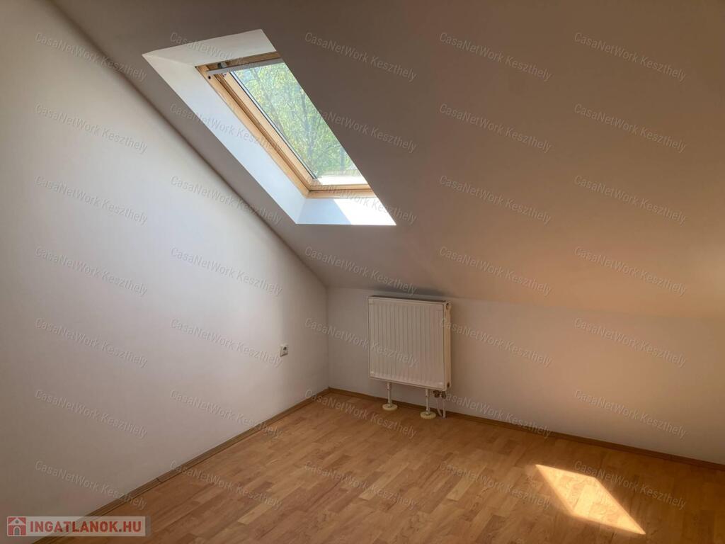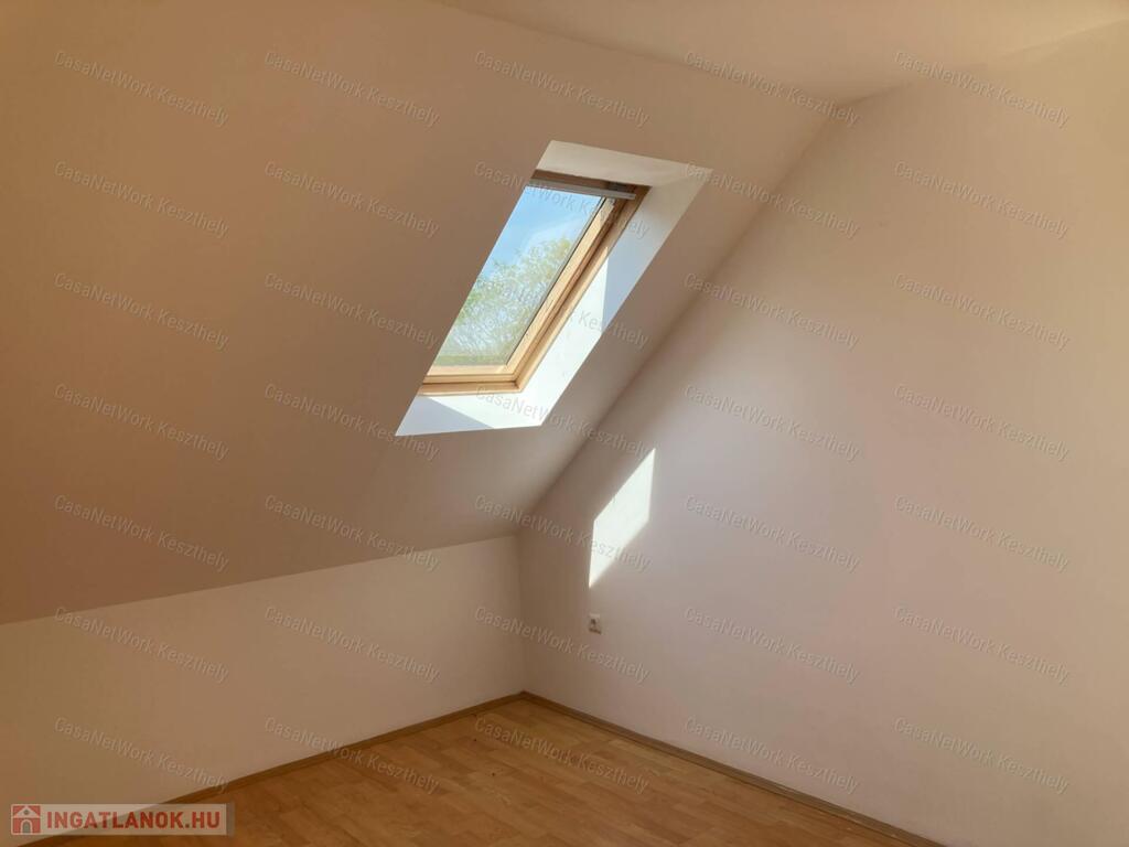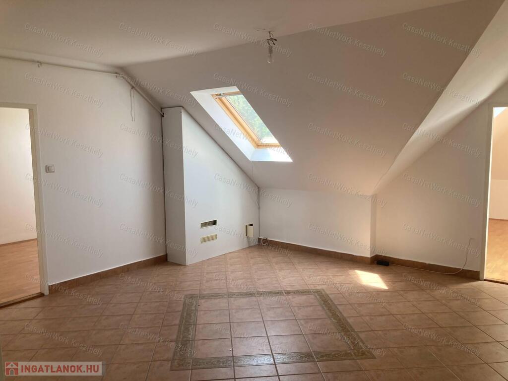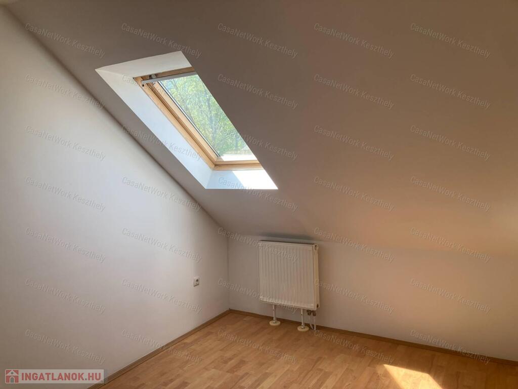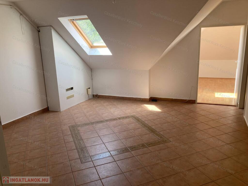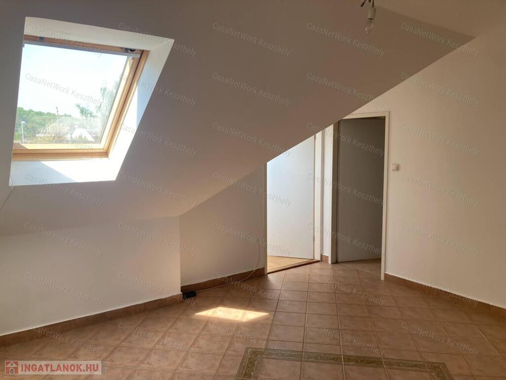 A leírásban szerepeljen:Casanetwork-Keszthely figyelmébe ajánlja ezt a Balatonhoz nagyon közeli 4 szobás,világos lakást.A lakás egy klasszikus,felújított balatoni villa épület első emeleti részén helyezkedik el,amely már tetőtér,de a nagy tereknek és belmagasságnak köszönhetően nem zavaró és nyomasztó.A házban 9 lakás helyezkedik el,de ezen az emeleten csak kettő.Az autó parkolás külön térköves,zárt udvaron lehetséges, a kert rendezett és egy szalonnasütőt is elhelyeztek a ház lakói számára.A lakás egyik nagy értéke,hogy a badacsonytomaji strand pontosan 5 perc séta,légvonalban kb. 300 m,a bejárati ajtót mindig zárják a lakók és kaputelefonos rendszerrel működik.A házban 2 lakó életvitelszerűen él,így aki nyaralónak használja a lakást is nyugodt lehet,hogy van aki egész évben vigyázza.A tulajdonost Balaton északi partján kisebb ház vagy lakás cseréje is érdekli értékegyeztetéssel.-nappali+ 3 szoba,fűrdő wc,spájz-földszinten tárolási lehetőségek-az autóbeállót a vételár tartalmazzaRészletesebb felvilágosításért, vagy a személyes megtekintésért hívjon a megadott telefonszámon, vagy forduljon a KESZTHELYI irodánkhoz, Keszthely, Fejér Gy. 2.